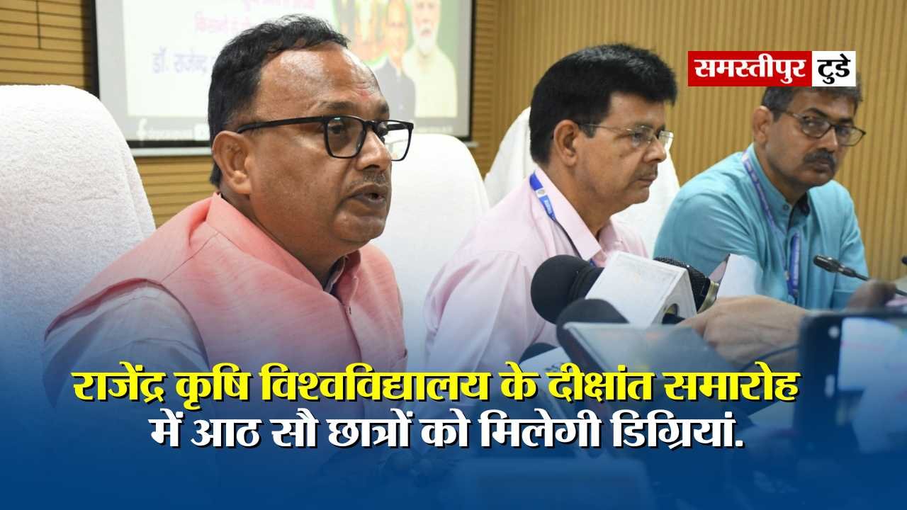 RPCAU News : डॉ राजेन्द्र प्रसाद केंद्रीय कृषि विश्वविद्यालय पूसा समस्तीपुर में दीक्षांत समारोह 17 जुलाई को आयोजित किया जा रहा है। इस समारोह में केंद्रीय कृषि एवं किसान कल्याण मंत्री श्री शिवराज सिंह चौहान, केंद्रीय राज्य मंत्री कृषि एवं किसान कल्याण श्री भागीरथ चौधरी एवं केंद्रीय राज्य मंत्री कृषि, किसान कल्याण श्री राम नाथ ठाकुर तथा बिहार के उपमुख्यमंत्री एवं कृषि मंत्री श्री विजय कुमार सिन्हा शामिल होंगे। यह जानकारी कुलपति डॉ पी एस पांडेय ने प्रेस वार्ता में दी।