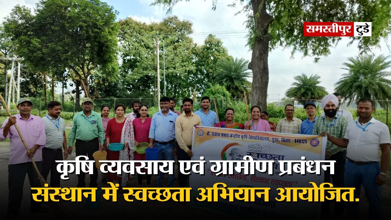 समस्तीपुर। डॉ. राजेन्द्र प्रसाद केंद्रीय कृषि विश्वविद्यालय, पूसा के कृषि व्यवसाय एवं ग्रामीण प्रबंधन संस्थान में मंगलवार को स्वच्छता अभियान चलाया गया। कार्यक्रम की अध्यक्षता सह-प्राध्यापक डॉ. ऋतंभरा ने की। इस दौरान संस्थान के सभी प्राध्यापकों एवं कर्मचारियों ने परिसर के चारों ओर सफाई अभियान में भाग लिया।
