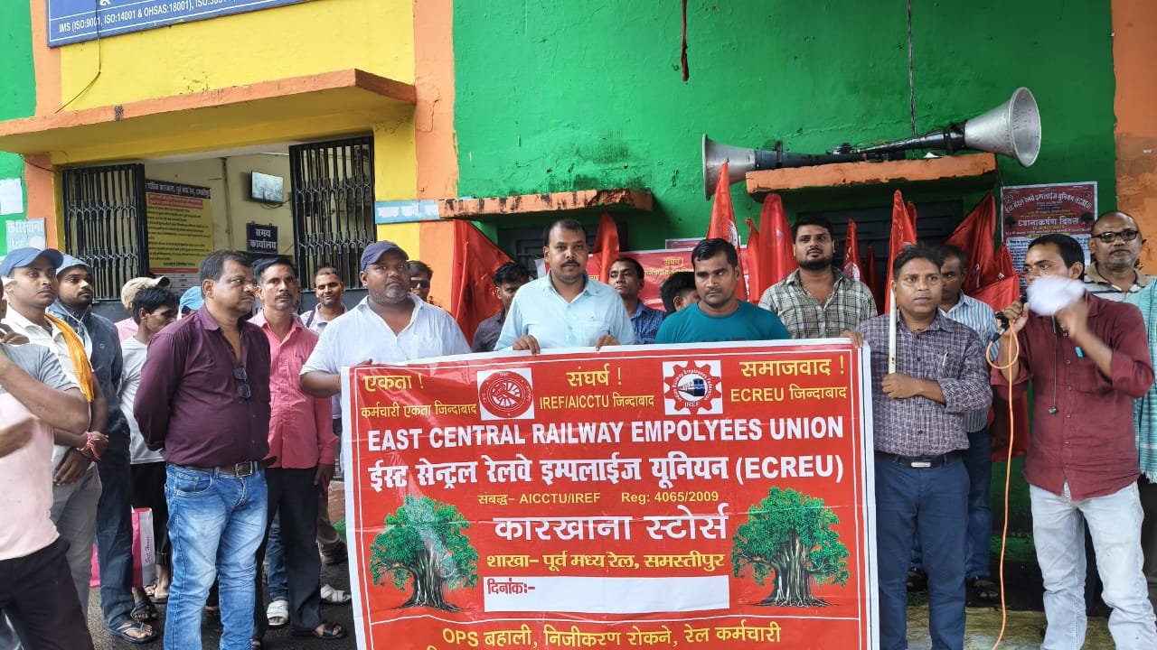 यांत्रिक कारखाना समस्तीपुर के गेट पर् महासचिव ECREU संगठन पूर्व मध्य रेलवे हाजीपुर के आह्वान पर कारखाना स्टोर्स Shot समय 14.00 बजे से समस्तीपुर के अध्यक्ष फुलेन्द्र पासवान के अध्यक्षता में ध्यानाकर्षण दिवस मनाते हुए धरना प्रदर्शन व गेट मीटिंग का आयोजन किया गया है।