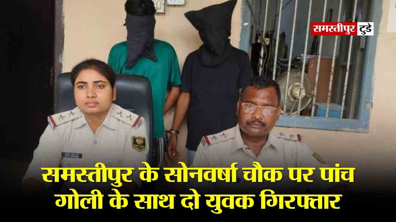 समस्तीपुर मुफस्सिल थाना पुलिस ने शुक्रवार को सोनवर्षा चौक पर वाहन जांच के दौरान दो युवकों को गिरफ्तार किया। पुलिस ने उनके पास से पांच जिंदा गोलियां बरामद कीं।